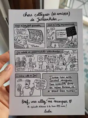 Il y a quelques jours, lors d'un dernier séminaire, j'ai dit aurevoir à l'équipe incroyable de JeVeuxAider.gouv.fr qui m'a accompagnée pendant 2 ans et demi en full remote (et en quelques séminaires en physique quand même)!