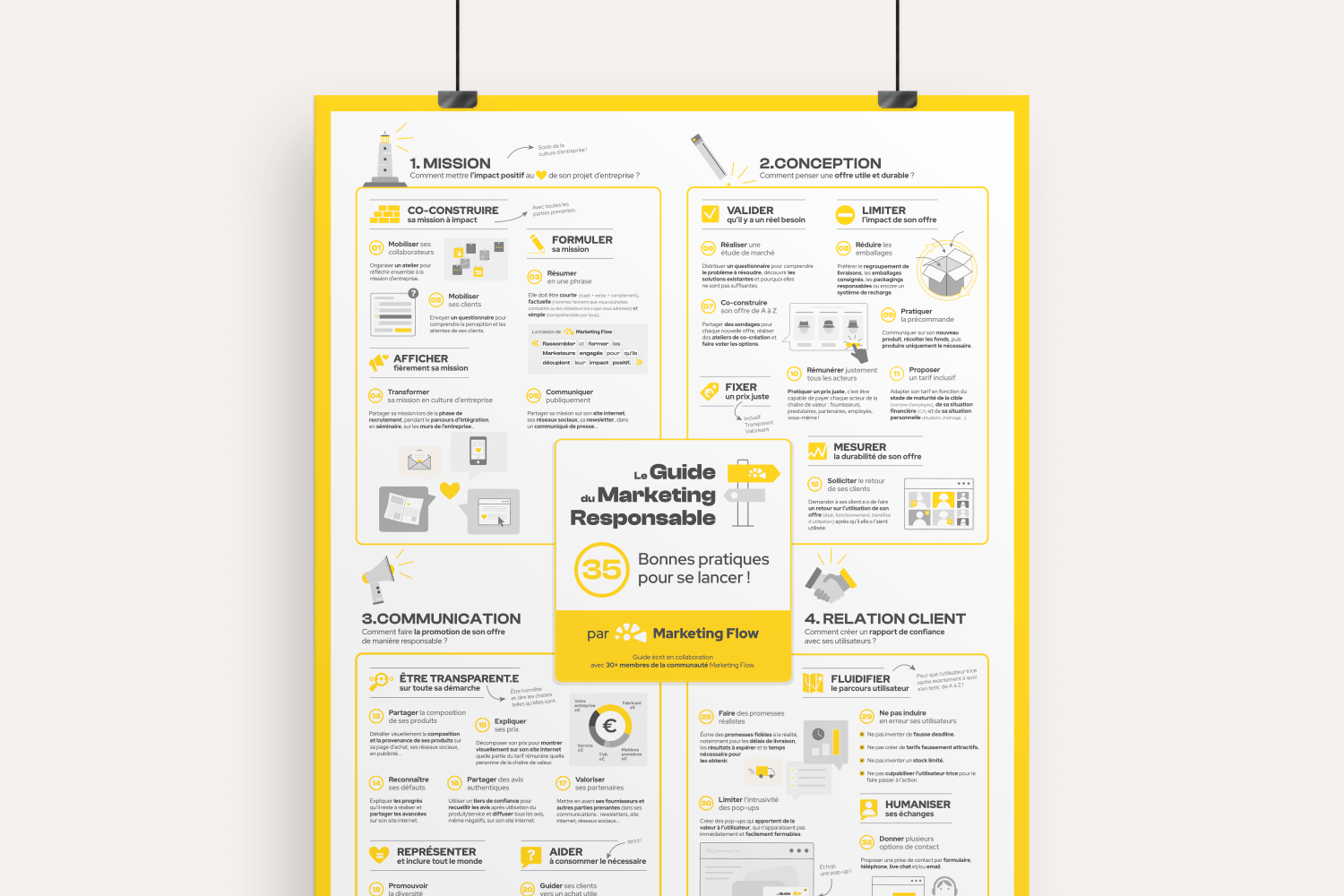 Ce support peut être digital (comme une infographie, une présentation PDF ou pitch deck par exemple) ou imprimé (comme un rapport de bilan carbone ou une mesure d’impact, une affiche, un kakemono par exemple).